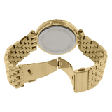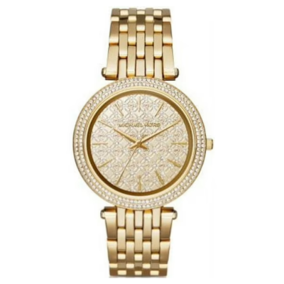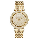 Iconic designer Michael Kors is one of the top names in American fashion, with fashion forward styles and bold designs. This women's watch from the Darci collection features a gold-tone stainless steel bracelet and gold-tone crystal dial. Case: Gold tone stainless steel Caseback: Stainless steel, snap-down Bezel: Gold tone stainless...