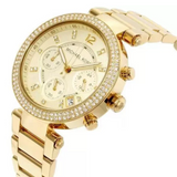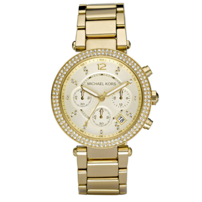 Make an elegant statement with this shiny gold-tone stainless steel Michael Kors chronograph.