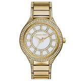 Glitz crystals and a mother-of-pearl dial add a glamorous touch to Michael Kors' gold-tone stainless steel Kerry watch.