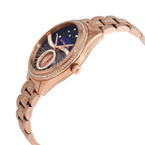 Dial: celestial-inspired blue sunray multifunction with fan texture overlay and crystal pavé motif