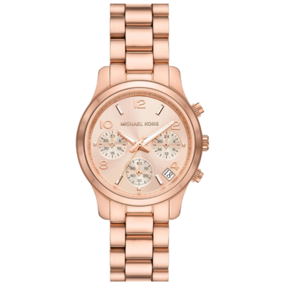 Our Runway watch will make a refined impression every day. Cast in rose gold-tone stainless steel, this classic design features three sub-dials and a multifunctional mechanism.